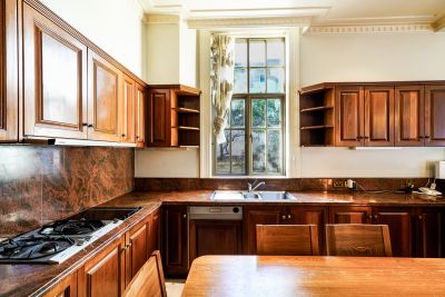 - Gourmet gas kitchen fitted with stainless steel appliances